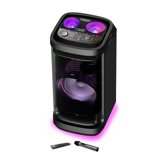 AKAI DJ-BY6L Karaoke Set, 150W RMS, Disco Kugla, FM, USB i Bežični Mikrofon – S Baterijom