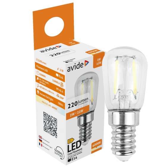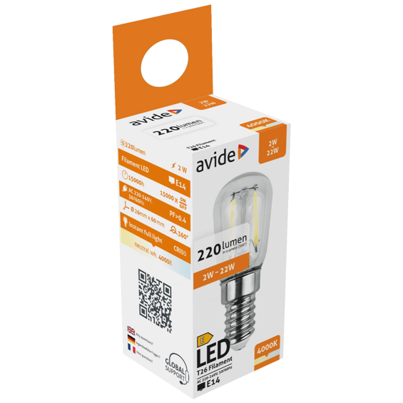 Avide Žarulja, LED 2W, E14, 4000K, 230V AC, bijela svjetlost - Filament T26 2W E14