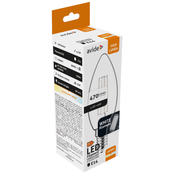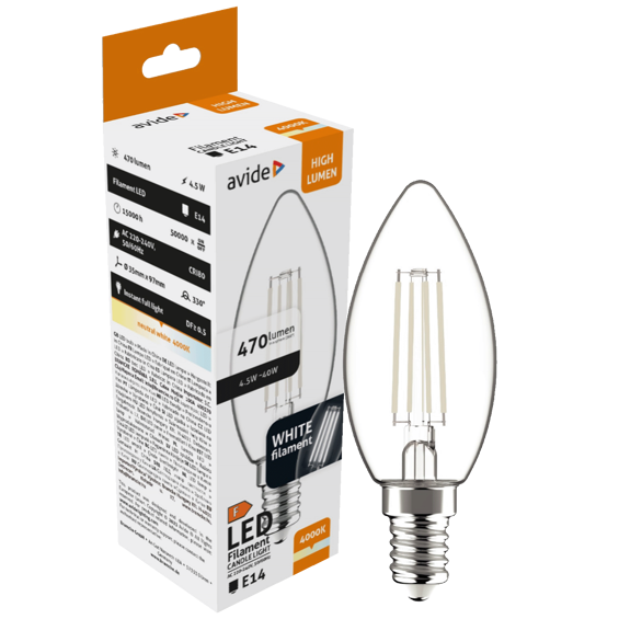 Avide Žarulja, LED 4.5W, E14, 4000K, 230V AC, bijela svjetlost - White Filament Candle 4.5W E14