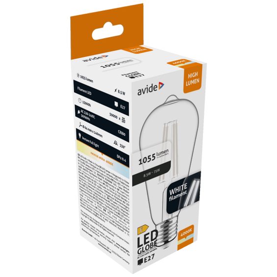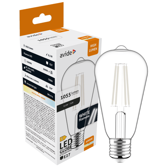 Avide Žarulja, LED 8.9W, E27, 4000K, 230V AC, bijela svjetlost - White Filament ST64 8.5W E27