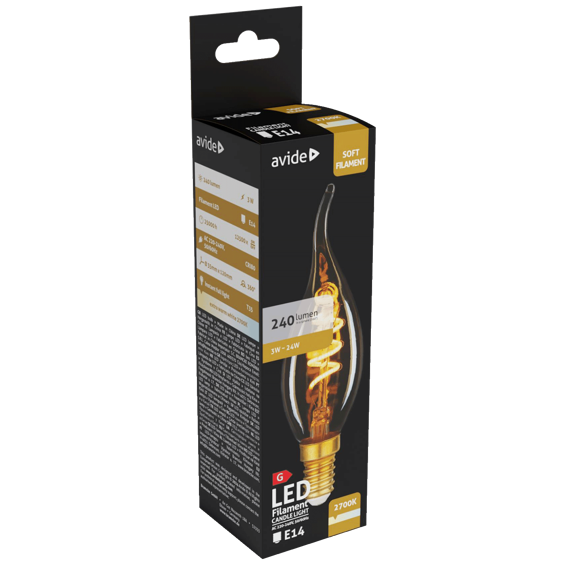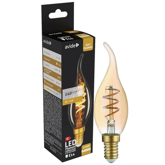 Avide Žarulja,LED 3W,E14,2700K,230V AC,topla bijela svjetlost - Soft Filament Candle Flame 3W E14