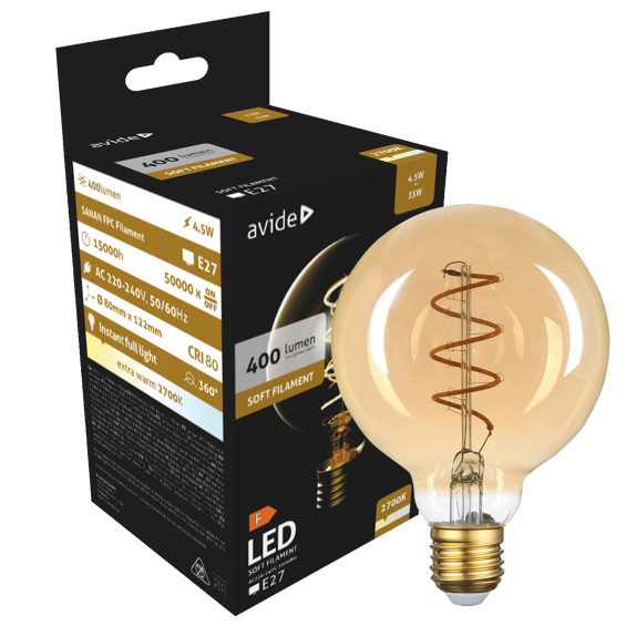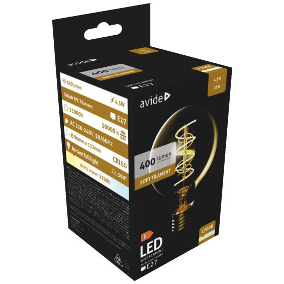 Avide Žarulja,LED,4.5W,E14,2700K,230V AC,topla bijela svjetlost - Soft Filament G80 4.5W E27