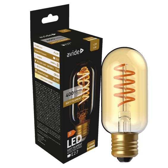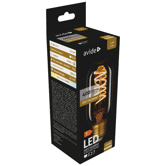 Avide Žarulja,LED,4.5W,E27,2700K,230V AC,topla bijela svjetlost - Soft Filament T45 4.5W E27