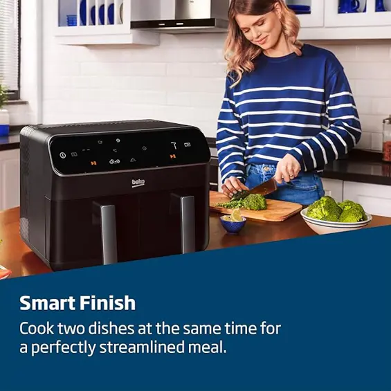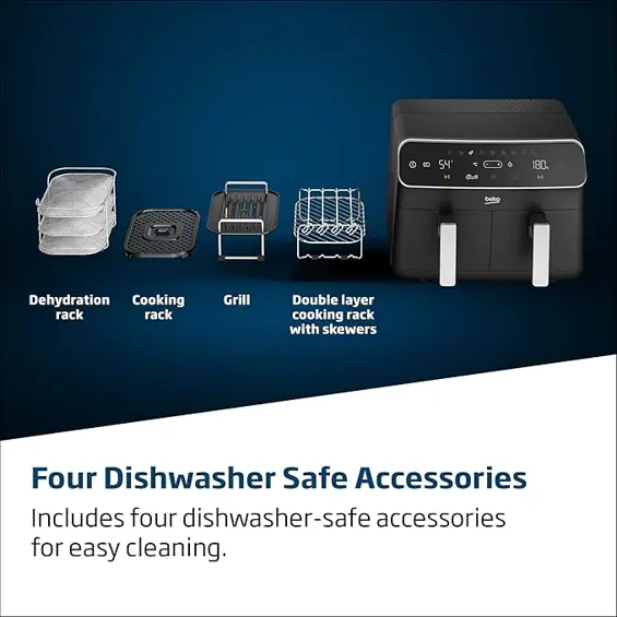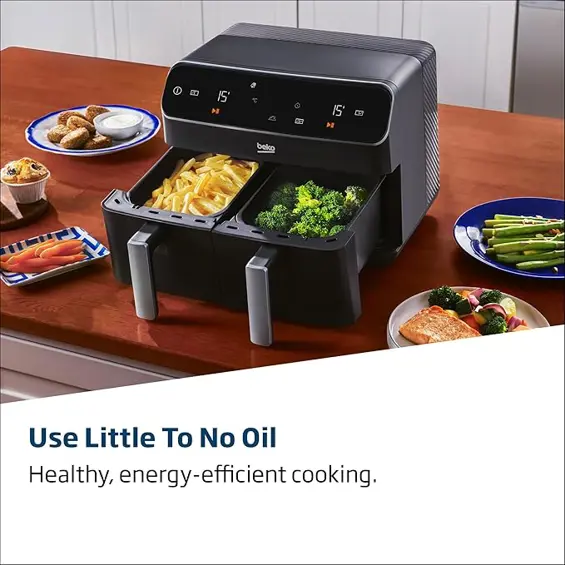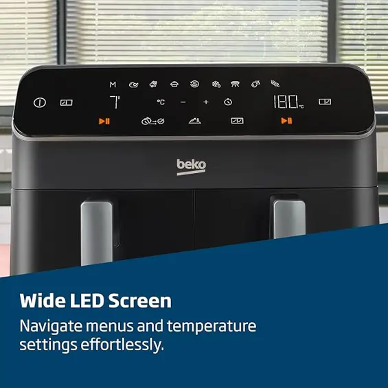Beko Dual Zone Friteza na Vrući Zrak FRL 5388 B – 8.5 L (2x 4.25 L), 2400 W, Digitalni Zaslon, Crna/Srebrna