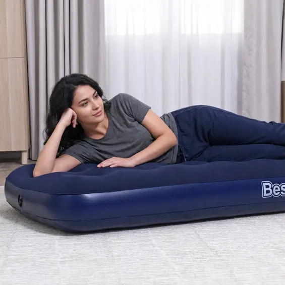 Bestwey 56432 Jednokrevetni Zračni Madrac na Napuhavanje – 185x76x22 cm – Plavi Velur