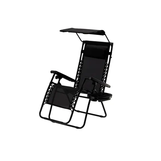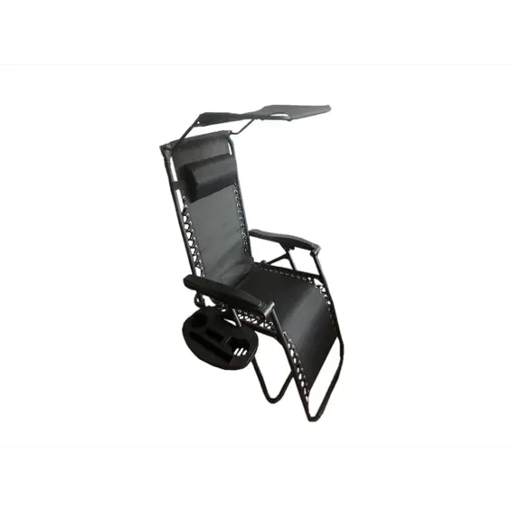 Garden line sklopiva vrtna ležaljka crna s jastukom, torbicom, suncobranom i osloncem za glavu