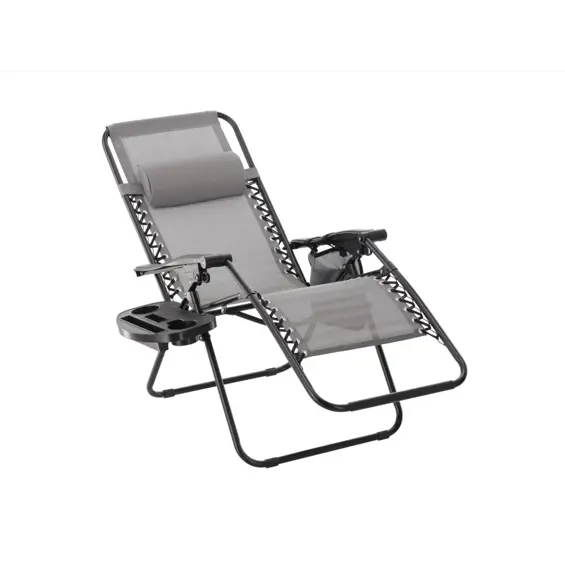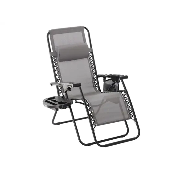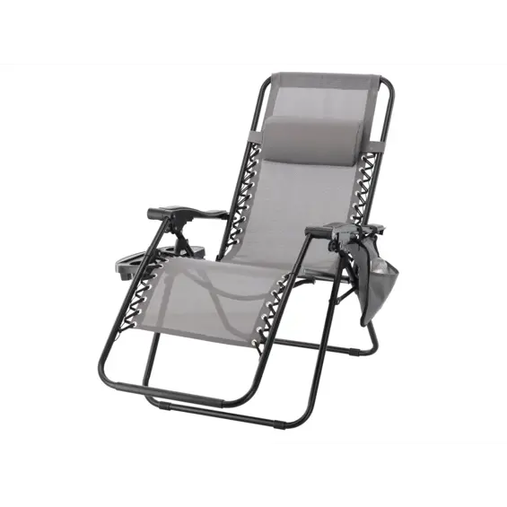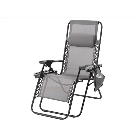 Garden Line sklopiva vrtna ležaljka s naslonom i džepom, siva – udobna i praktična
