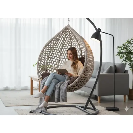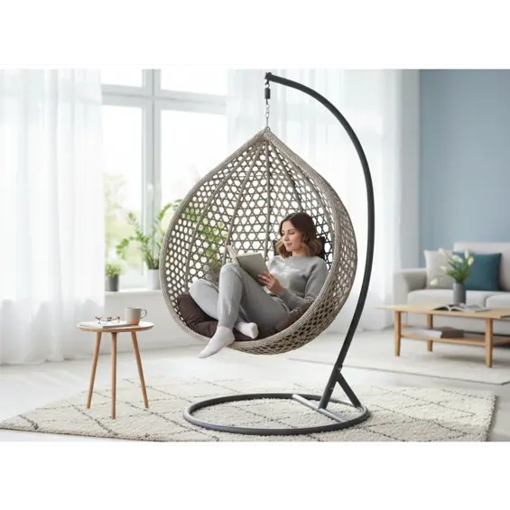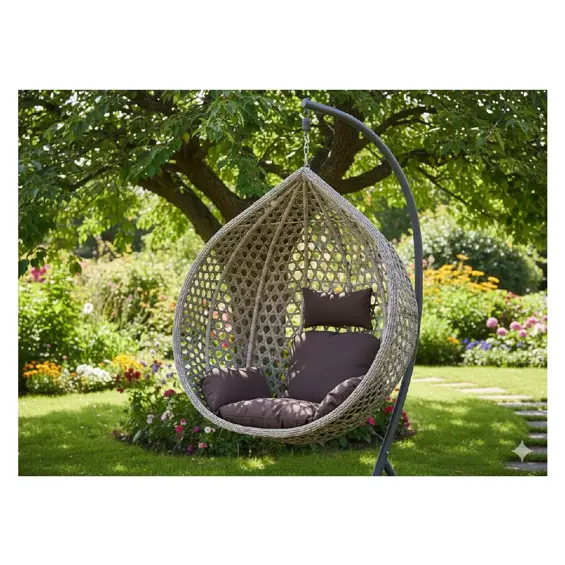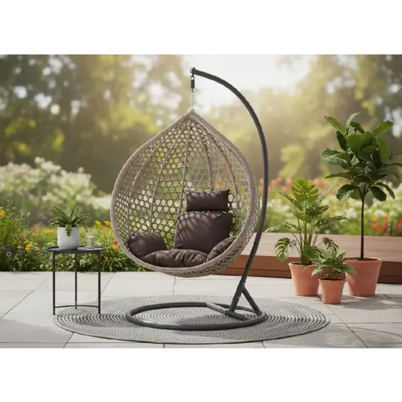 Garden line XL viseća fotelja siva s mekanim sivim jastukom i tamno sivim okvirom