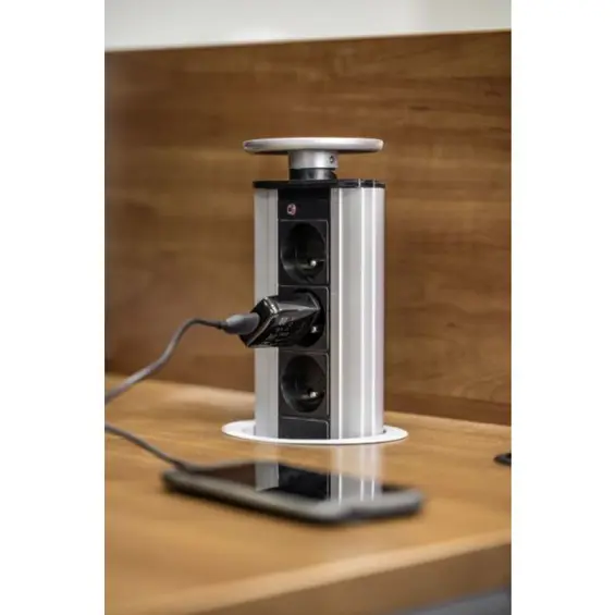 GTV Ugradbena utičnica na izvlačenje Ø100mm, 3x Schuko, srebrna (AE-BPW3GS-80)