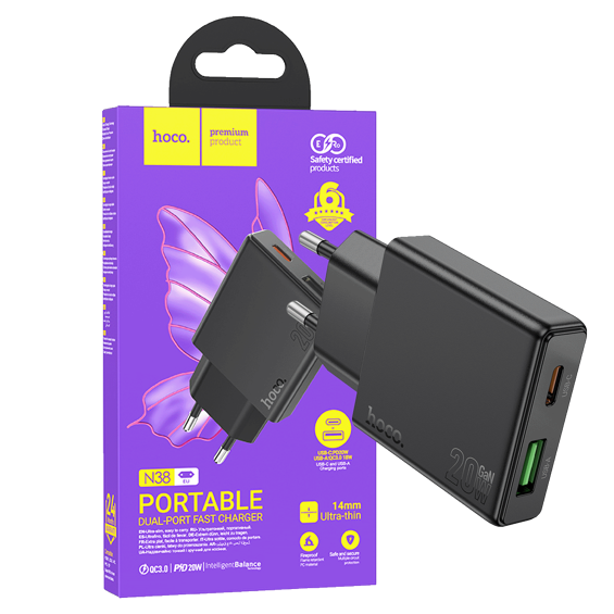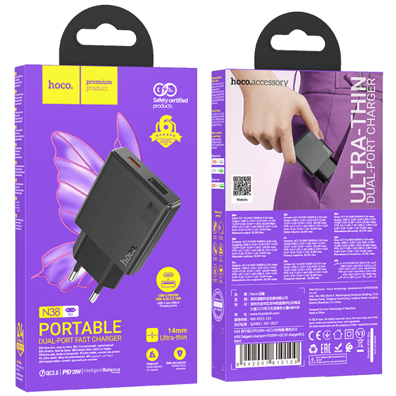 hoco. Punjač kućni, brzi, PD20W + QC3.0 Dual Port - N38 Delgado EU