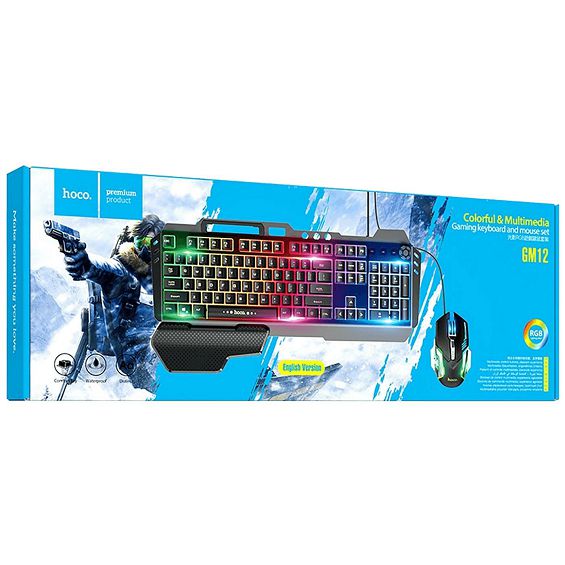 hoco. Tipkovnica+miš, gaming set, RGB osvjetljenje, USB - GM12
