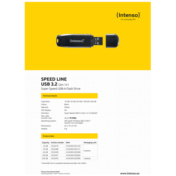 (Intenso) USB Flash drive 32GB Hi-Speed USB 3.2, SPEED Line - USB3.2-32GB/Speed Line
