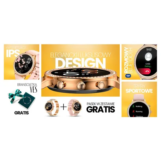 MANTA SWD01GD Pametni Sat, Bluetooth, Višefunkcijski – Zlatni
