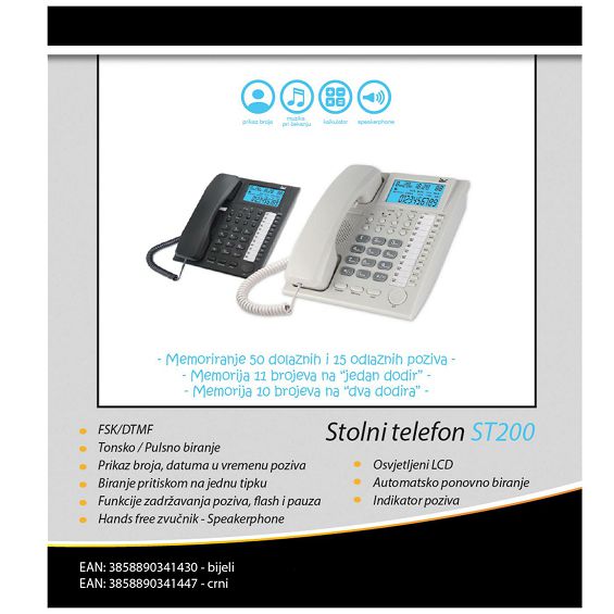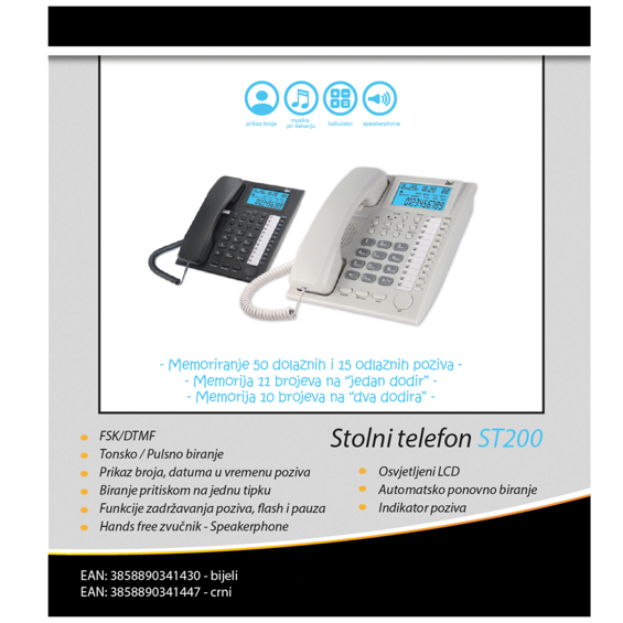 MeanIT Telefon analogni, stolni, LCD zaslon, crni - ST200 Black