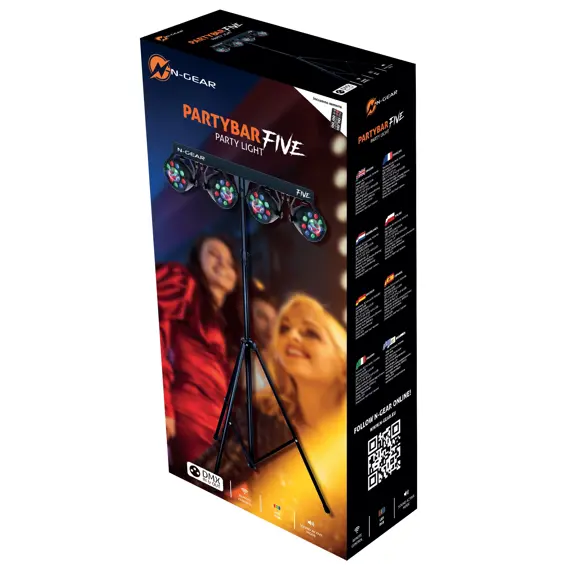 N-Gear PB-FIVE Partybar, DMX In/Out, Stalak, 4 LED RGB Glave, Kontrola i Strobo Efekti