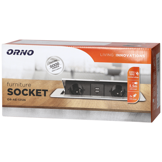 Orno Produžni kabel sa 2 x Schuko utičnice + 2 x USB, ugradbena - OR-AE-13126(GS)/G