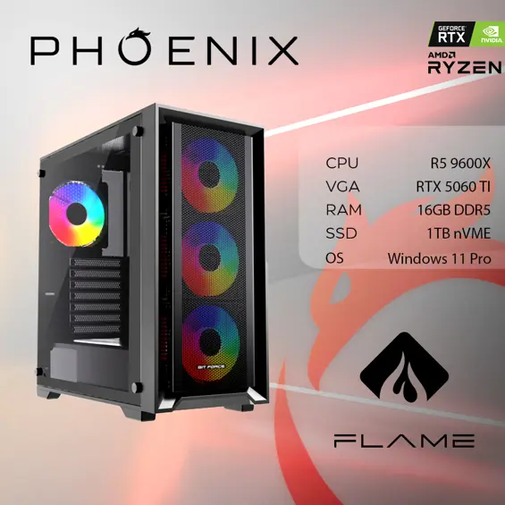 Računalo Phoenix FLAME X-518 AMD Ryzen 5 9600X/16GB DDR5/NVME SSD 1TB/RTX 5060 TI 8GB/600W 80+/Windows 11 PRO