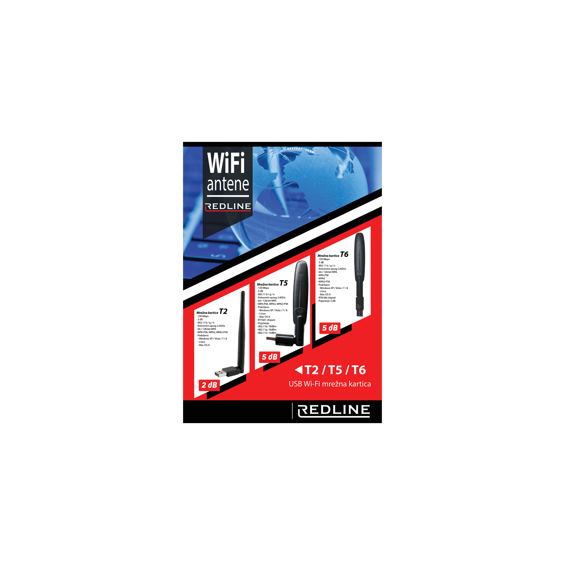 REDLINE Wi-Fi mrežna kartica, USB, 2.4 GHz, 5 dB, 150 Mbps, RT7601 - T5 WiFi antena