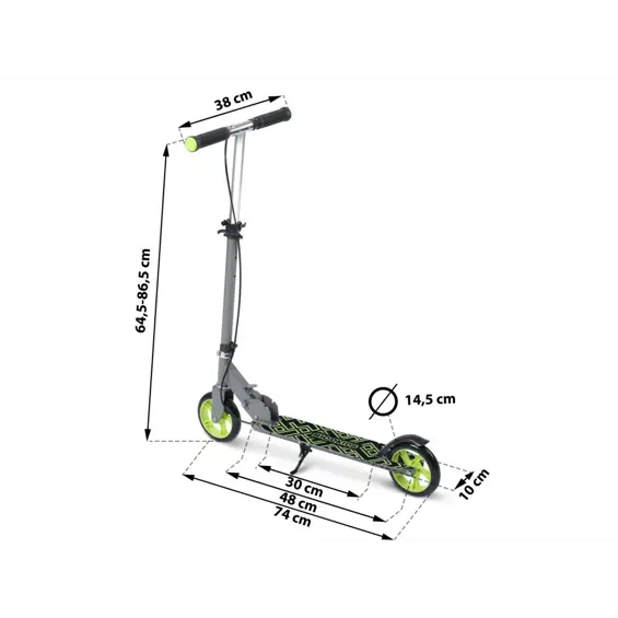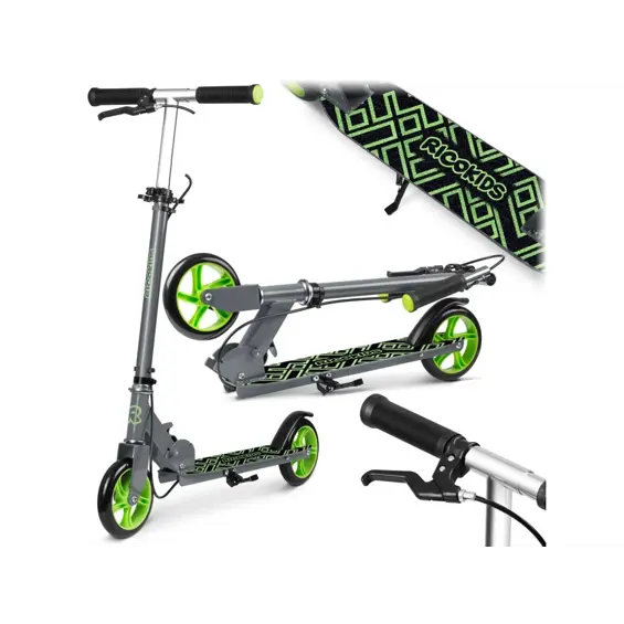 Ricokids Kodi romobil sivo-zeleni – dječji skuter s LED kotačima i podesivim upravljačem