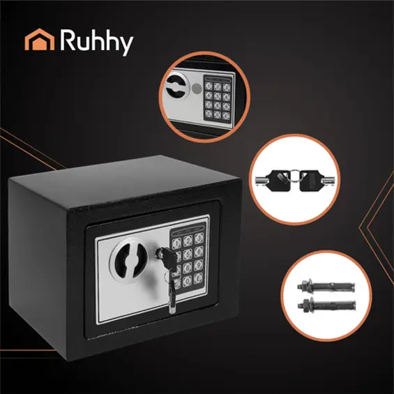 Ruhhy 26101- kućni sef s elektroničkom bravom – digitalni sef za novac i dokumente, crni