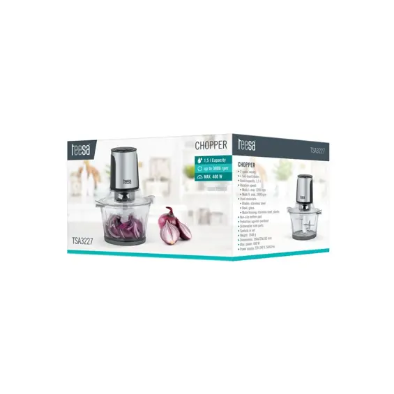 Teesa TSA3227-Sjeckalica 400W - 2 Brzine, 4 Dvostruke Oštrice, Staklena Zdjela 1.5L
