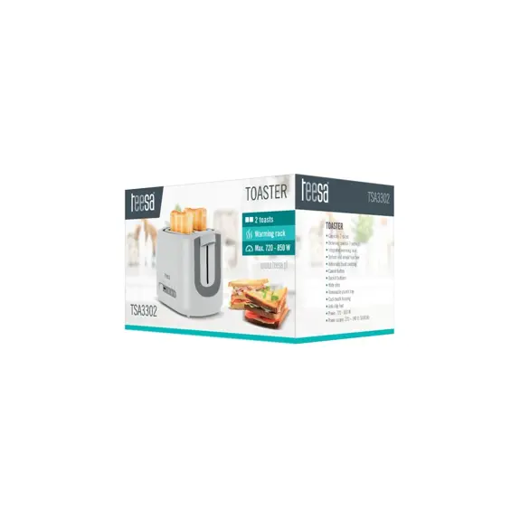 Toster Teesa TSA3302 850W - 2 Režnja, 7 Stupnjeva Prženja, Nehrđajući Čelik, Crni