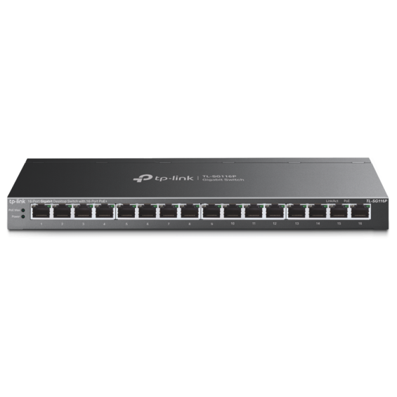 TP-Link SG116P 16-Port Gigabit PoE+ Switch – Plug & Play, 8× PoE+, 120W Budget