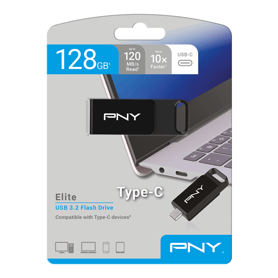 USB stick PNY Elite, 128GB, USB 3.2, Type-C, crni