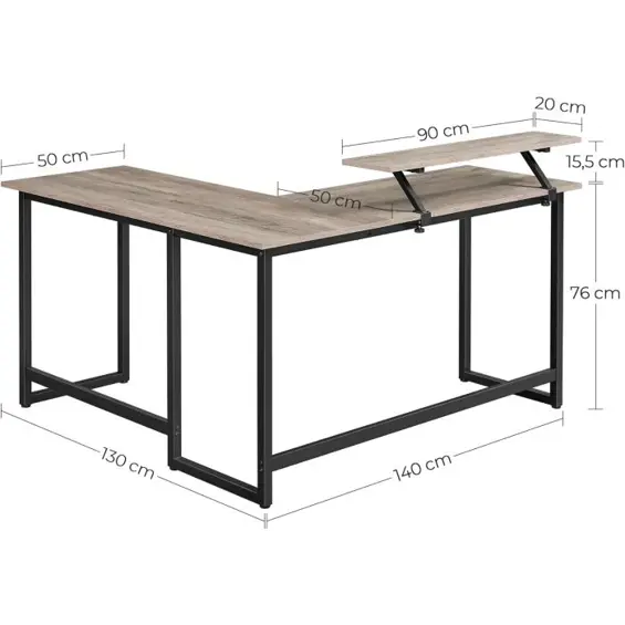 Vasagle LWD056B02 Kutni radni stol s policom za monitor,