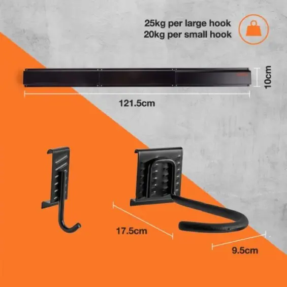VonHaus 3500257 9-dijelni Komplet za Pohranu Bicikala i Opreme – Zidne Kuke i Nosači