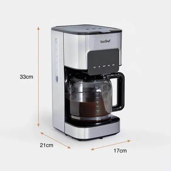 VonShef Aparat za Kavu s Filtrom – 1.5 L Kapacitet – Nehrđajući Čelik – Funkcija Održavanja Topline