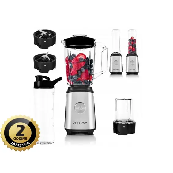 ZEEGMA Vitamine Blender, 1050W, Čaša 1L, 2x Sportska Boca 0,6L i Mlinac za Kavu